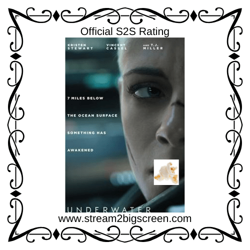 Glub Glub Glub…. that’s bottom of the ocean talk for “Welcome to Stream to Big Screen”. This week we were able to review the movie, Underwater. Underwater features Kristen Stewart as mechanical engineer, Norah, who gets trapped in the world’s largest and deepest drilling site and laboratory at the bottom of the ocean. Norah and the rest of her crew of aquatic researchers must find their way to safety and back to the surface before the laboratory, or worse, kills them. The Director, William Eubank, who has two previous directing credits to his name for The Signal (2014) and Love (2011) which didn’t do anything in theaters, also has another upcoming feature, Tautona, which sounds quite interesting. Interestingly enough, Eubank has a common theme in his films of space or the deepest part of the ocean or cave. Uninterestingly enough for Underwater, the film seems to be following his other films into obscurity.