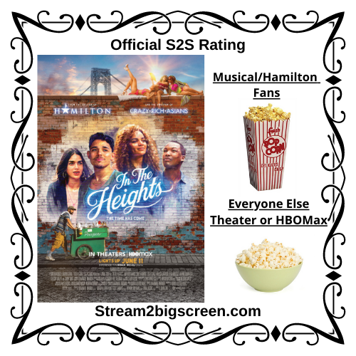 For me, In the Heights is a must see film, especially for musical fans. There’s a great cast giving wonderful performances. The music is infectious and the visuals are vibrant. While the film is too long, it never bores and has a really heartfelt and beautiful message. Grab that big box of popcorn and don’t miss this movie – at the theaters or on HBO Max, whichever you prefer.