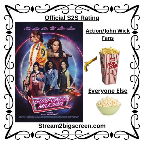 Ultimately, Gunpowder Milkshake is a fine action thriller with an unoriginal assassin plot but with a great supporting cast. There is a lot of style here and, if you like shoot-outs, then you will have your fill of those as well. For me, this is a good stream on a Saturday night with a bowl of popcorn, if you can get through the slow and repetitive first hour. For those looking for a John Wick and Kill Bill mash-up, grab your big box of popcorn and enjoy.