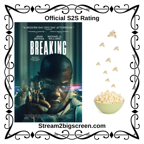 Ultimately, Breaking is a well-intentioned movie about a pretty serious subject matter, but it is packaged as an intense thriller. It is intense and very emotional, but it’s not the blockbuster, bank heist, thriller that it has been promoted to be. The cast is good and conveys the heartbreaking part of this story. With that warning, Breaking is effective, even if a bit deceptive in its approach. A bowl of popcorn for a matinee viewing is my suggestion.