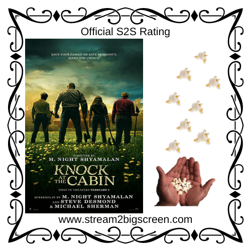 Okay, Streamers, I know we all have been waiting on pins and needles for M. Night Shyamalan’s next feature film, and it’s finally here. Oh, was that only me? Okay, then… Anway, I was anticipating Knock at the Cabin since I saw the first trailer last fall. Home invasion and the end of the world movies build on reasonable fears that many people have, so let’s see what Shyamalan was able to do with the mix of these two.