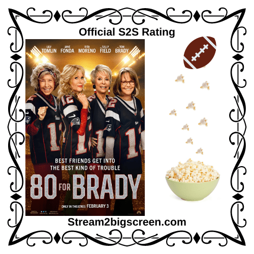 Hey, Streamers! Just in time for *wink* “The Big Game” *wink* next week, a new sports movie rushes its way into theaters. While the newly-re-retired Tom Brady will not be making another appearance at *wink* “The Big Game” *wink*, he does loom large on *wink* The Big Screen *wink*. (See what I did there!?!?) Anyway, Tom’s retired contemporaries are celebrating their obsession for him in 80 for Brady. Here’s how these golden girls tackled it.
