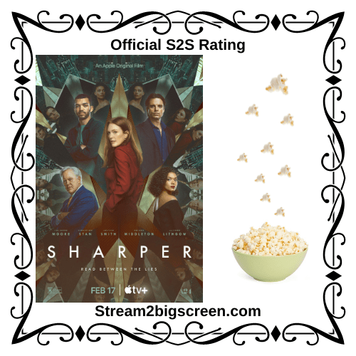 Ultimately, Sharper is an intriguing movie with interesting twists and turns. It is able to keep the audience engaged and guessing until the end. The cast is generally good, especially Justice Smith and Julianne Moore. If you like a psychological thriller, this one is worth at least a bowl of popcorn for a night in streaming.