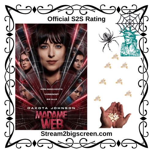 Hey, Streamers! We are back stuck in Cupid’s web of love. While everyone else was boo loving, we were in these streets watching Marvel’s latest Sony superhero, Madame Web. In Madame Web, Cassie Webb (Dakota Johnson), who is a paramedic in New York City, begins to get flashes from the future that catch her off-guard and doubting herself. These glimpses lead her to three young women who are being pursued by an evil Spider-Man-like person, Ezekiel Sims (Tahar Rahim). In order to understand her new-found affliction, Cassie must confront her past and grapple with the death of her mother. Spider webs and origin story hijinks ensue.