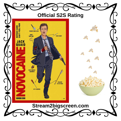 Hey, Streamers! We’re in the doldrums of March when it comes to new releases in the theaters. Trust me, it’s slim pickings. Nevertheless, I saw Novocaine, an action, comedy starring Jack Quaid as a man with a genetic disorder that prevents him from feeling any pain, and here’s whether it’s worth your time and money. In this movie, Nathan Caine (Quaid) is an assistant manager at a bank who is pining for a spunky teller, Sherry (Amber Midthunder). When Sherry is taken hostage by a gang of bank robbers, Nathan pursues the gang to save Sherry and uses his inability to feel pain like a superpower. Bloody, bone-cracking hijinks ensue.