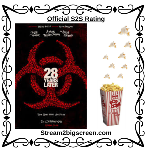 Hey, Streamers! It’s another weekend in the summer movie season, which means another long-awaited sequel arrives in the theaters. On this first official weekend of summer, 28 Years Later has been released 18 years after the second film in the 28 Days Later zombie franchise. This movie had one of the best trailers of the year, so it had a lot to live up to. In 28 Years Later, Jamie (Aaron Taylor-Johnson) and his son, Spike (Alfie Williams), go on a journey to the mainland, which remains quarantined due to the Rage Virus, from their isolated village as a rite of a passage for the 12-year-old to kill his first infected. On their journey, they encounter mutated variants of the infected, who prove to be challenging threats. While at home, Jamie’s wife, Isla (Jodie Comer), suffers from an undiagnosed, mysterious illness, which Spike desperately wants his father to find a way to get her treatment. Bloody, skull-ripping and delirious hijinks ensue.