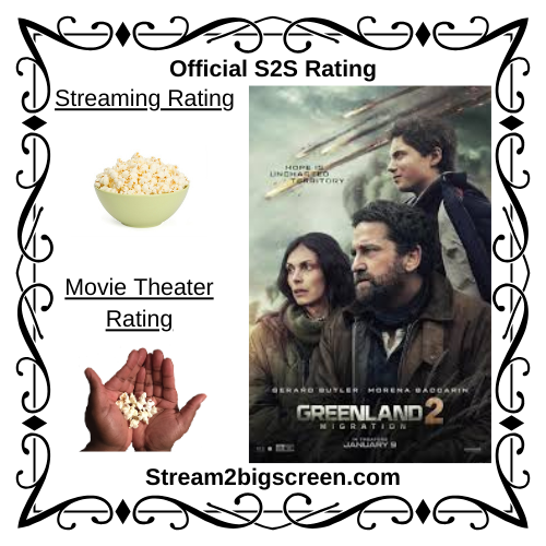 Hey, Streamers! The doldrums of the January movie season continue where it’s either a leftover Oscar hopeful from 2025 or some throwaway schlock to fill in empty theaters. Greenland 2: Migration falls into the latter camp despite being a sequel to a pretty good disaster flick from 2020. In Migration, it’s five years after the Clarke interstellar comet destroyed most of Earth and civilization with it. The Garrity family and others that escape the destruction of the comet in North America are living in the bunker in Greenland with John (Gerard Butler) and Allison (Morena Baccarin) having prominent roles in dealing with the bunker’s dwindling resources. Of course, when disaster strikes again, John must do all he can to brave the elements of the destroyed world in order to get his family to safety. Aftershocks and intergalactic falling debris hijinks ensue.