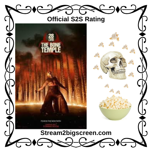 Hey, Streamers! Remember a couple months ago when we were raving about 28 Years Later and how it ended on a bonkers cliffhanger? Well, we didn’t have to wait that long to get the next chapter in the British zombie saga for 28 Years Later: The Bone Temple was released in theaters this month. In this sequel, after Spike (Alfie Williams) has been “rescued” by the Jimmys, he has to participate in a death match as an initiation ritual to become a member of the Fingers who follow Sir Jimmy (Jack O’Connell). Meanwhile, Dr. Kelson (Ralph Fiennes) continues to build up his Bone Temple while stumbling on a surprising development in treating the Alpha infected, Samson (Chi Lewis-Parry). Rage-filled, bloody encounters and 80’s music hijinks ensue.