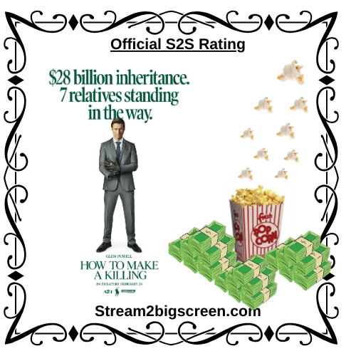 What’s up, Streamers! We are living in the era of the rise of Glen Powell. It’s like he’s in mid-career Tom Cruise mode, where his choices are accessible yet diverse. His latest release, How to Make a Killing, feels like something 1990’s Tom Cruise would have gotten before he got mired in action-hero mode. In How to Make a Killing, Beckett Redfellow (Powell), whose mother was disowned by her obscenely wealthy family, seeks to reclaim his inheritance through dubious means. A childhood friend (Margaret Qualley), who has unclear motives herself, goads Beckett along. When Beckett’s fortunes begin to turnaround, he has to decide when enough is enough. Family tragedy hijinks ensue.